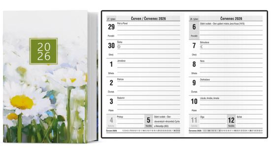 Diář Gustav, týdenní, kapesní, lamino, Kopretiny 2026