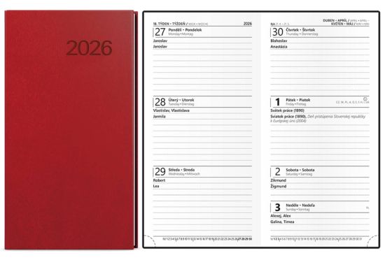 Diář Jakub, týdenní, kapesní, vivella, bordó 2026