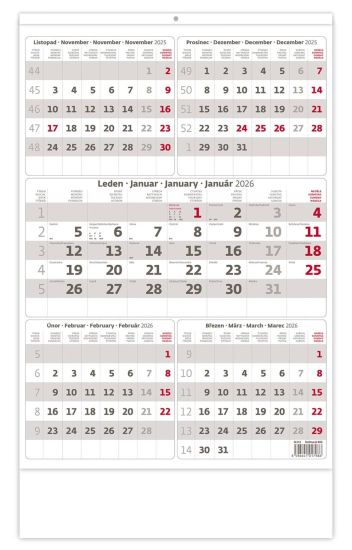 Nástěnný kalendář, pětiměsíční, šedý 2026