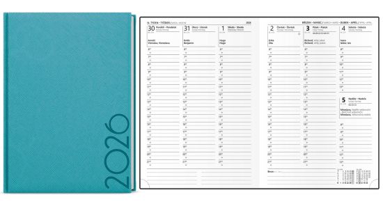 Diář Oskar Tora, týdenní, A5, tyrkysový 2026