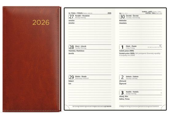 Diář Jakub Premier, týdenní, kapesní, hnědý 2026