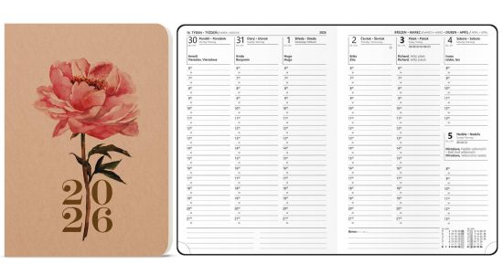Diář Oskar, týdenní, A5, kraft, Růže 2026